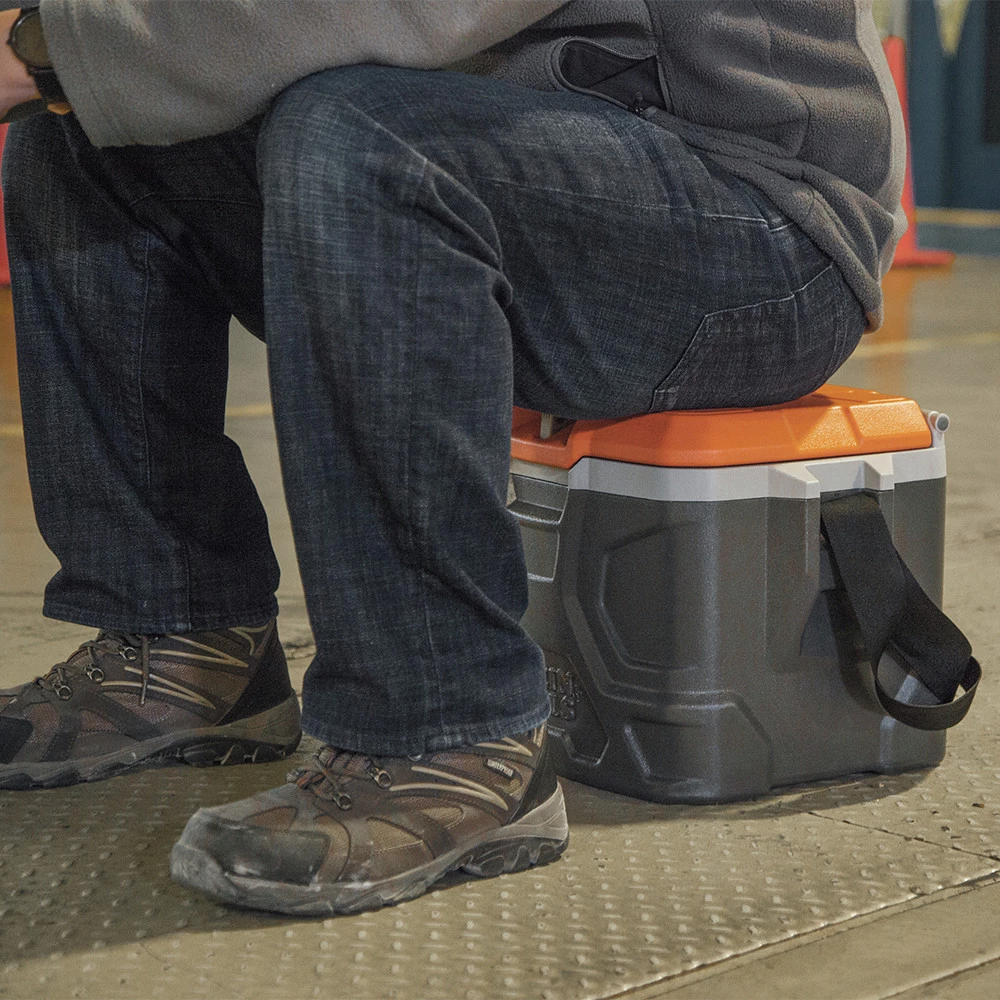 - Cooler supports up to 300 lbs. (136.1 kg); not only does this carry lunch, it doubles as a handy place to sit