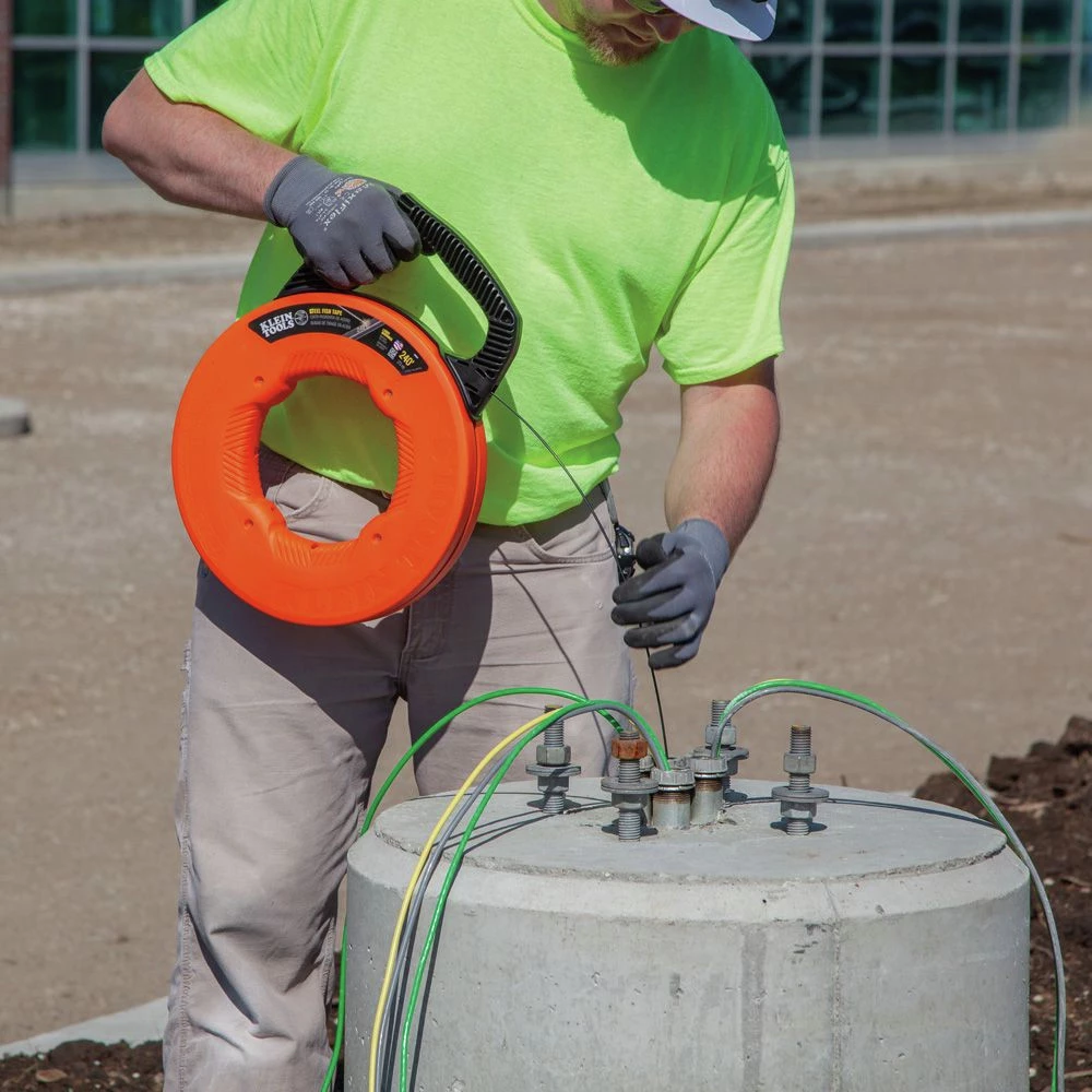 - Durable, high-carbon strength 1/8 in. wide steel fish tapes are firm yet flexible for long runs and large wire pulls